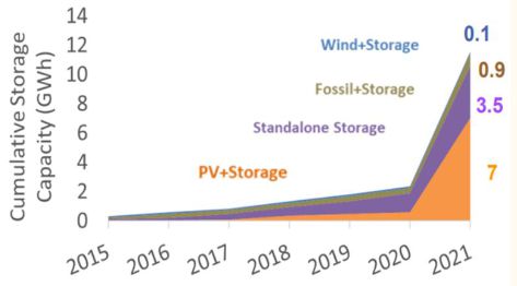 2020年之前美國(guó)表前市場(chǎng)以獨(dú)立儲(chǔ)能為主,隨著光伏裝機(jī)中儲(chǔ)能滲透率的提高, 2021年存量?jī)?chǔ)能裝機(jī)中光伏+儲(chǔ)能項(xiàng)目占比達(dá)到61% ,預(yù)計(jì)未來這一占比將繼續(xù)提升。