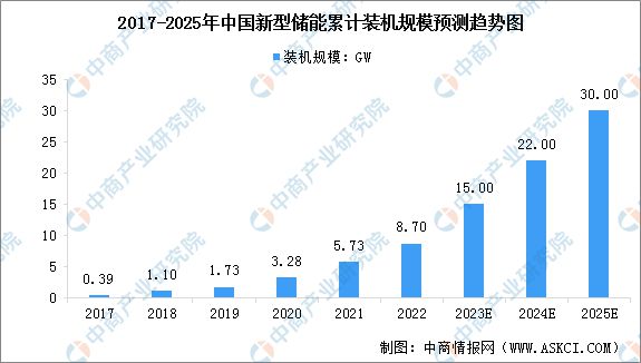 截至2021年底,我國已投運(yùn)的新型儲能裝機(jī)規(guī)模達(dá)5.73GW,同比增長74.70%。根據(jù)國家能源局發(fā)布的相關(guān)數(shù)據(jù),截至2022年底,全國已投運(yùn)新型儲能項目裝機(jī)規(guī)模達(dá)8.7GW,平均儲能時長約2.1小時。根據(jù)《關(guān)于加快推動新型儲能發(fā)展的指導(dǎo)意見》,預(yù)計到2025年國內(nèi)新型儲能裝機(jī)規(guī)模將增至30GW。