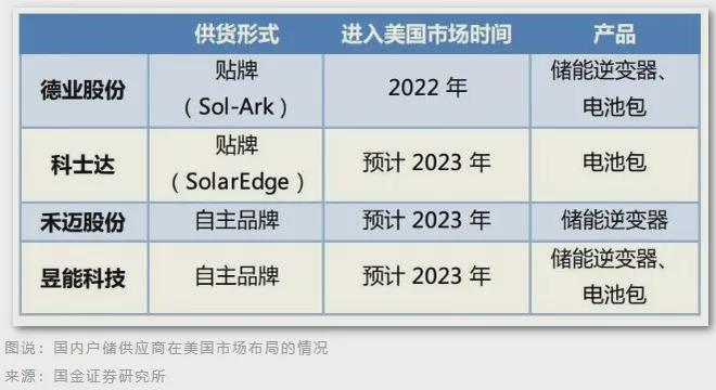 寧德時(shí)代為 Tesla、Fluence 主要供應(yīng)商之一,受益較高;科士達(dá)為 SolarEdge 主要電池代工供應(yīng)商;德業(yè)股份綁定美國(guó)經(jīng)銷商 Sol-Ark;禾邁股份、昱能科技(微逆)、科陸電子(電池、PCS)等均在美國(guó)有出貨。