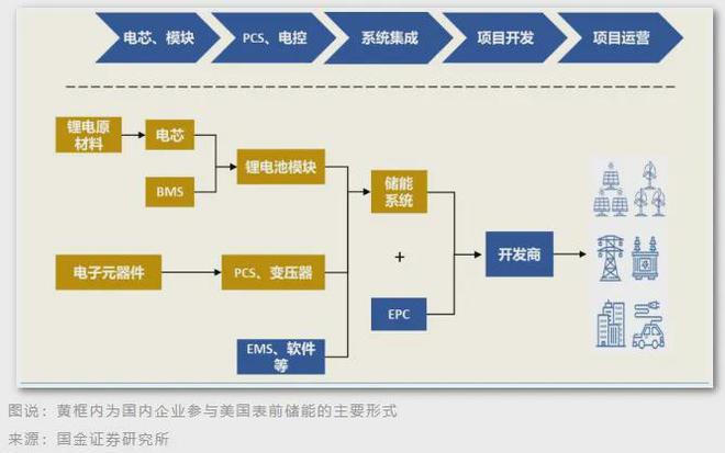 中國(guó)企業(yè)主要作為供應(yīng)商參與其中,主要分為兩種,分別是直接出口集成好的系統(tǒng)或電池柜或?yàn)楹M庀到y(tǒng)集成商供應(yīng)電芯、PCS 或溫控等設(shè)備。