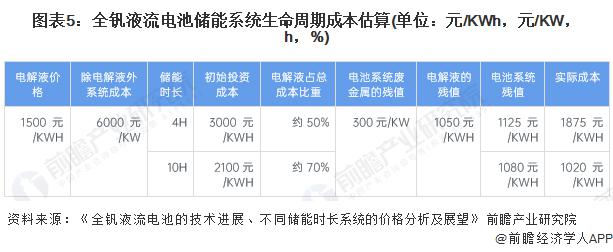 綜合考慮殘值后,儲能時長分別為 4h、10h 的全釩液流電池系統(tǒng)實際成本僅為 1875 元 /kWh、1020 元 /kWh。因此,從生命周期角度來講,全釩液流電池具有性價比高、經(jīng)濟性好、環(huán)境負(fù)荷低的優(yōu)勢。