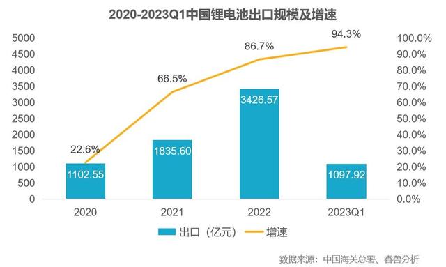 鋰電池成為新的出口增長(zhǎng)點(diǎn),2023年一季度鋰電池出口增長(zhǎng)94.3%