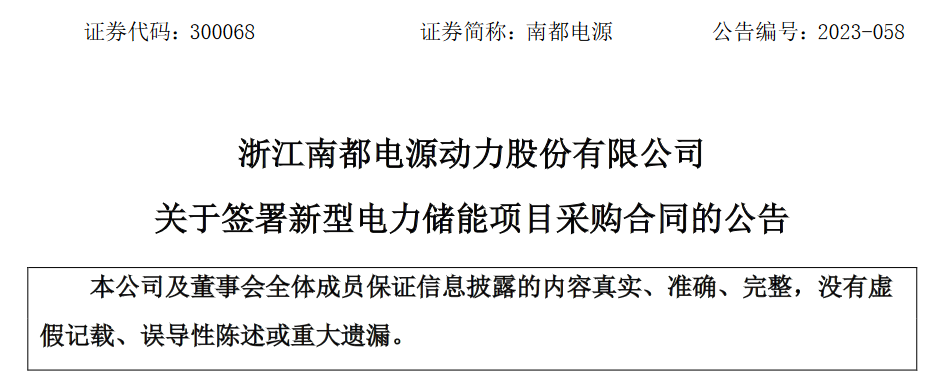 南都電源于4月27日發(fā)布公告稱,浙江南都電源動力股份有限公司控股子公司浙江南都能源科技有限公司于近日與中國電建集團貴州工程有限公司簽署《儲能系統(tǒng)設(shè)備采購合同》,供貨內(nèi)容主要為儲能鋰電池系統(tǒng),合同金額為2.9億元。