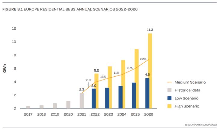 歐洲光伏產(chǎn)業(yè)協(xié)會(huì)《歐洲戶用儲(chǔ)能市場(chǎng)展望報(bào)告 2022-2026》裝機(jī)量預(yù)測(cè)