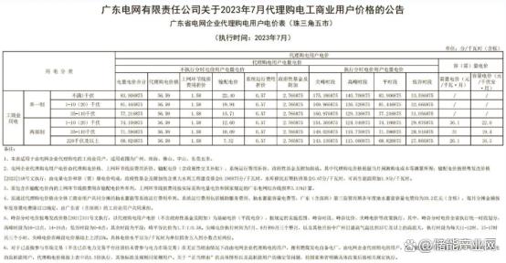 根據上面2023年7月廣東省電價表可以查到:下表1的廣東省工商業(yè)用電(珠三角五市)兩部制電價1-10(20)千伏分時電價數(shù)據。表1給出了當月尖峰平谷的電價和時間段、小時數(shù)等信息。