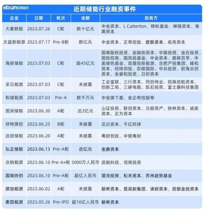 今年以來,多起儲能企業(yè)融資事件的金額都在億元以上。專注于雙碳賽道的投資基金及聚焦清潔能源的風(fēng)投機構(gòu),紛紛加大對儲能行業(yè)的投資力度。例如7月5日,海辰儲能完成45億元C輪融資;4月17日,融科儲能完成超10億元B+輪融資;3月28日,精控能源完成數(shù)億元C輪融資;3月18日,緯景儲能完成超6億元A輪融資等。