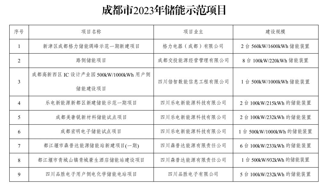 最高100萬!成都市2023年儲能示范項(xiàng)目開始公示