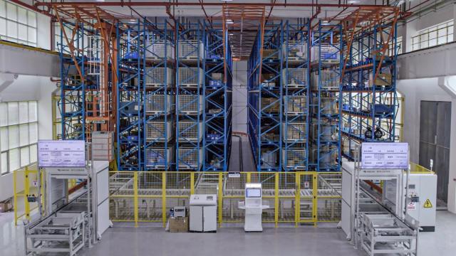 為了更好地提升倉內(nèi)空間利用率,在進(jìn)行現(xiàn)場測量與規(guī)劃后,京東物流通過投入使用堆垛機(jī)、智能升降貨柜、料箱AGV等智能設(shè)備為其進(jìn)行了一系列軟硬件改造升級,最大程度利用場地空間,建設(shè)超萬個儲位,儲位最高可放置重量達(dá)1000公斤的物資。與此同時,京東物流還全面利用人臉識別技術(shù),語音播報、燈光指引、智能墨水屏、重力式感應(yīng)貨架等硬件,部署智能軟件系統(tǒng),實(shí)現(xiàn)24小時無人化值守,提高領(lǐng)料效率,確保安全生產(chǎn)。