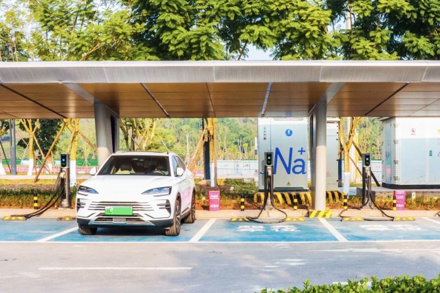 在自貢高投集團(tuán)公司辦公區(qū)停車場(chǎng),印有藍(lán)色“Na+(鈉離子)”標(biāo)志的興儲(chǔ)世紀(jì)50kW/105kWh工商業(yè)儲(chǔ)能柜醒目亮眼,正源源不斷地為場(chǎng)內(nèi)的新能源汽車輸入電能。