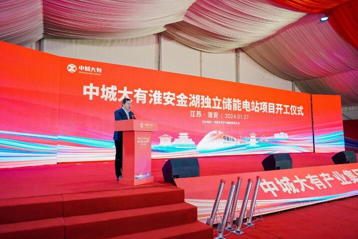 本網(wǎng)訊 1月27日上午,中城大有產(chǎn)業(yè)集團(tuán)有限公司江蘇首個開工的淮安金湖150MW/300MWh獨(dú)立儲能電站項目開工儀式隆重舉行。深圳新四軍研究會會長少將軍銜郭建軍,淮安市總工會黨組成員副主席張修和,淮安市總工會駐會產(chǎn)業(yè)工會主任、四級調(diào)研員劉峰,中共金湖縣委常委、縣人民政府黨組成員楊鴻明,金湖縣總工會主席束小平,金湖縣銀涂鎮(zhèn)黨委書記沈明忠,金湖縣銀涂鎮(zhèn)黨委副書記、鎮(zhèn)長楊陽,南京六合經(jīng)濟(jì)開發(fā)區(qū)副主任楊坤,安徽蚌埠市固鎮(zhèn)縣人大常委副主任高正薇,棗莊薛城區(qū)能源局局長曹偉,淮安清江浦區(qū)融投集團(tuán)沈琦超,安徽旌德經(jīng)開區(qū)黨工委書記、管委會主任傅世恩,中城大有產(chǎn)業(yè)集團(tuán)有限公司董事長吳發(fā)福,中城大有產(chǎn)業(yè)集團(tuán)有限公司黨委書記張金培等有關(guān)領(lǐng)導(dǎo)出席并見證開工儀式。