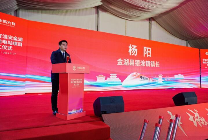 儀式開始,金湖縣銀涂鎮(zhèn)黨委副書記、鎮(zhèn)長楊陽首先致辭對項目表示祝賀,并指出該項目是銀涂鎮(zhèn)貫徹落實縣委縣政府縣域經(jīng)濟(jì)突破決策部署,是深入開展重特大項目攻堅的重要階段性成果。他強(qiáng)調(diào),中城大有項目的開工,吹響了2024年“雙招雙引”的號角,擂響了項目建設(shè)的戰(zhàn)鼓。項目開工只是開始,加快推進(jìn)、建成投產(chǎn)才是關(guān)鍵。銀涂將以開工為新的起點(diǎn),繼續(xù)把項目建設(shè)作為各項工作的頭版頭條,全力以赴抓招商、強(qiáng)平臺、優(yōu)服務(wù),一如既往為項目建設(shè)提供最優(yōu)質(zhì)的服務(wù),做好企業(yè)全生命周期服務(wù)、全要素保障,以企業(yè)需求為導(dǎo)向,明確項目分管領(lǐng)導(dǎo)和專職幫辦員,進(jìn)行專人對接,實行“全程跟進(jìn)+現(xiàn)場服務(wù)”幫辦模式,千方百計為項目投產(chǎn)搶時間、趕進(jìn)度,全力保障中城大有早日投產(chǎn)達(dá)效。