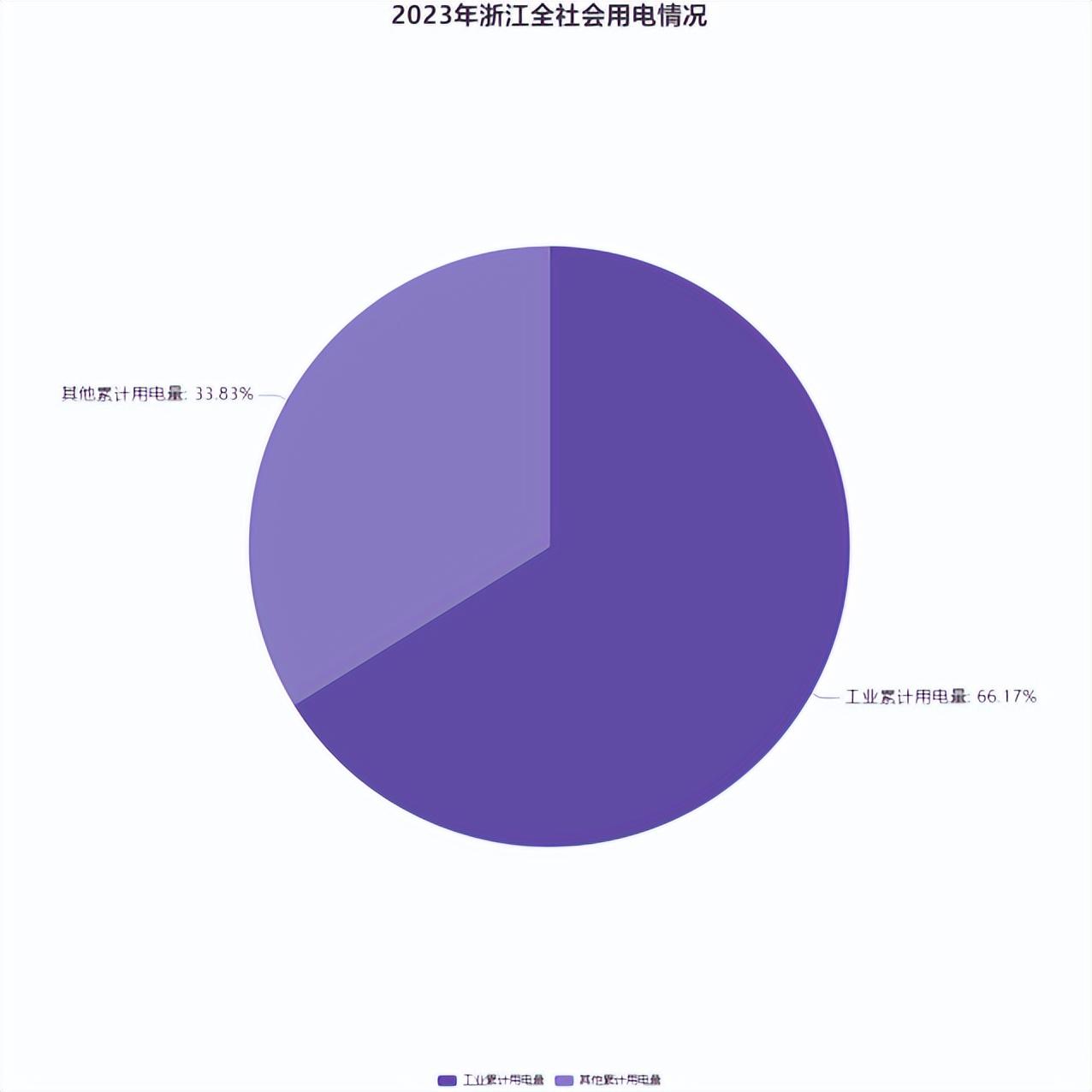 拉動經(jīng)濟增長的同時,大量工商業(yè)的活動也提高了浙江地區(qū)的用電量。國網(wǎng)浙江省電力有限公司發(fā)布的數(shù)據(jù)顯示,2023年浙江全社會用電量6192億度時,同比增長6.78%。其中工業(yè)累計用電量4097.06億度,占全社會用電量比重超6成。