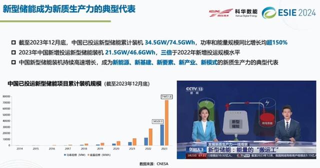AI的盡頭是新能源,這也是光儲的巨大機遇。新型儲能正在成為新質生產(chǎn)力的代表,可以看到,我國在2023年12月底,投運數(shù)據(jù)已經(jīng)超過74.5GWh,當年新增突破了21.5GW/46.6GWh,三倍于2022年的水平。