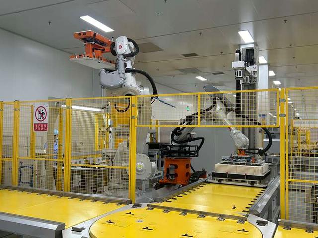 緯景儲能珠海“超G工廠”生產線上的機械手臂正在工作。中青報·中青網見習記者 賈驥業(yè)/攝