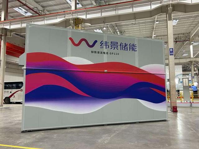 緯景儲能珠海“超G工廠”廠區(qū)內展示的緯景儲能鋅鐵液流電池GP110。中青報·中青網見習記者 賈驥業(yè)/攝