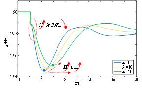 圖2 附加虛擬慣性控制時(shí)系統(tǒng)的頻率響應(yīng)