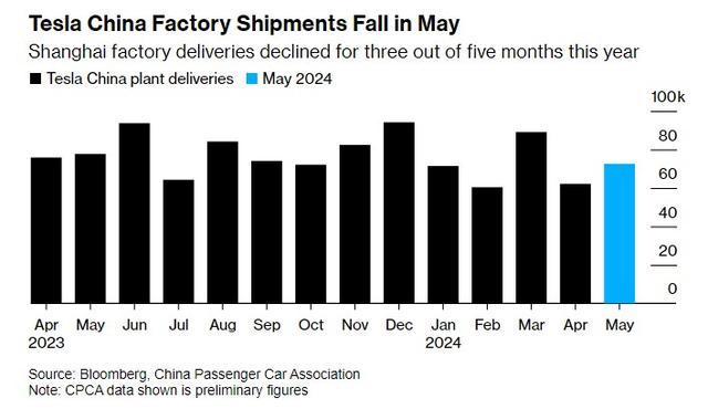 智通財經獲悉,5月,特斯拉(TSLA.US)上海工廠的交付量今年以來第三次同比下滑,與競爭對手的強勁增長形成鮮明對比,也進一步顯示出在中國爭奪客戶的激烈競爭。