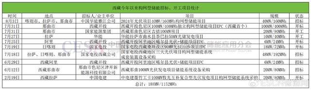 8月3日,華能雅江公司發(fā)布2024年光伏項(xiàng)目40MW/160MWh構(gòu)網(wǎng)型儲能項(xiàng)目預(yù)招標(biāo)招標(biāo)公告,項(xiàng)目位于西藏自治區(qū)日喀則市、拉薩市、那曲市。