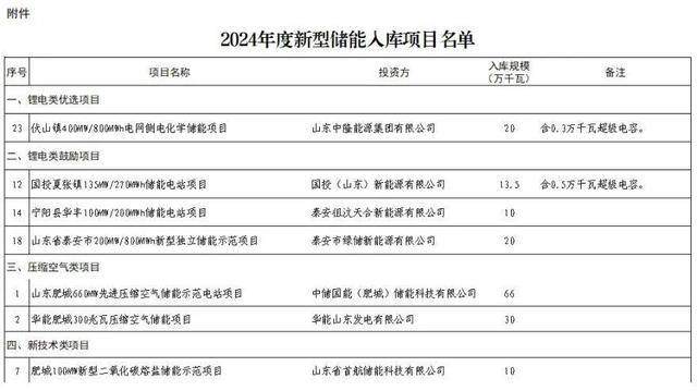 1695MW!泰安7個(gè)項(xiàng)目入選山東省2024年度新型儲(chǔ)能入庫(kù)項(xiàng)目名單