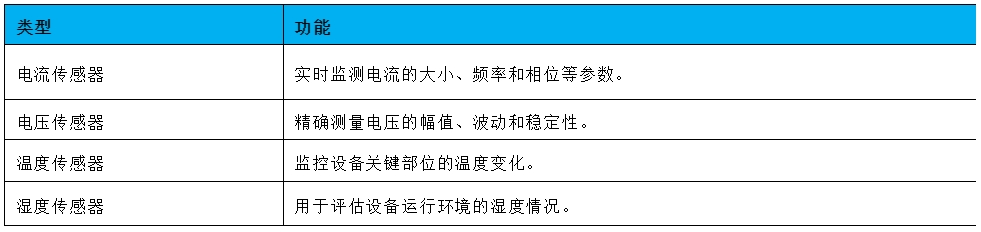 通過安裝在電力設(shè)備上的電流、電壓、濕度等各類傳感器,采集設(shè)備運行參數(shù)。其功能見表3。