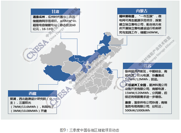 2016年三季度,中國新增儲能項(xiàng)目(含投運(yùn)、在建、規(guī)劃中項(xiàng)目)中,甘肅的裝機(jī)規(guī)模最大,為400MW,占三季度新增裝機(jī)總規(guī)模的68%,并且全部應(yīng)用在可再生能源并網(wǎng)領(lǐng)域。