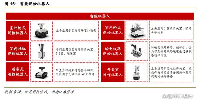 巡檢是保障電網(wǎng)穩(wěn)定性的重要環(huán)節(jié)。巡檢機(jī)器人有多種應(yīng)用場景,可在變電站、輸電網(wǎng) 等場景使用,其中在變電站的應(yīng)用更早,變電站巡檢場景包括室外場景及高壓室、保護(hù)室、 開關(guān)室等室內(nèi)場景。巡檢機(jī)器人可實(shí)現(xiàn)對室內(nèi)外設(shè)備的精準(zhǔn)檢測,并通過后臺對巡檢數(shù)據(jù)進(jìn) 行比對和分析,實(shí)現(xiàn)預(yù)測性維護(hù),在提高巡檢效率的同時(shí),可有效保障設(shè)備的平穩(wěn)運(yùn)行。此 外,由于輸電通常在溝壑、高山、丘陵等環(huán)境復(fù)雜的區(qū)域,且輸電線路直接暴露于大氣環(huán)境 中,在運(yùn)行中會誘發(fā)多種事故,人工巡檢和檢修面臨著線路長、工作強(qiáng)度大、條件艱苦、效率低下、檢測質(zhì)量不佳等一系列問題,無法獲得輸電線路的實(shí)時(shí)運(yùn)行情況,甚至威脅作業(yè)人 員的生命安全,通過輸電線路巡檢機(jī)器人可實(shí)現(xiàn)對輸電線路桿塔、絕緣子以及輸電線路通道 等精確巡視,自動采集數(shù)據(jù)并進(jìn)行后臺分析,為輸電線路的運(yùn)維提供可靠的信息。