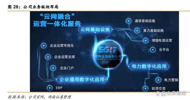 子公司業(yè)務分層,實現(xiàn)云網融合全流程覆蓋。公司 2019 年置入中電普華、繼遠軟件、 中電飛華、中電啟明星四家全資子公司,其中中電普華系電力營銷服務商;繼遠軟件系可視 化服務供應商,可實現(xiàn)過程的可視化監(jiān)測識別分析以及相關數(shù)據(jù)的智能展示,為能源企業(yè)提 供整體解決方案;中電飛華系增值電信運營與通信網絡建設運營商;中電啟明星系能源交易 服務商,可提供電力中長期交易、電力現(xiàn)貨交易、競價策略研究、偏差考核等服務。