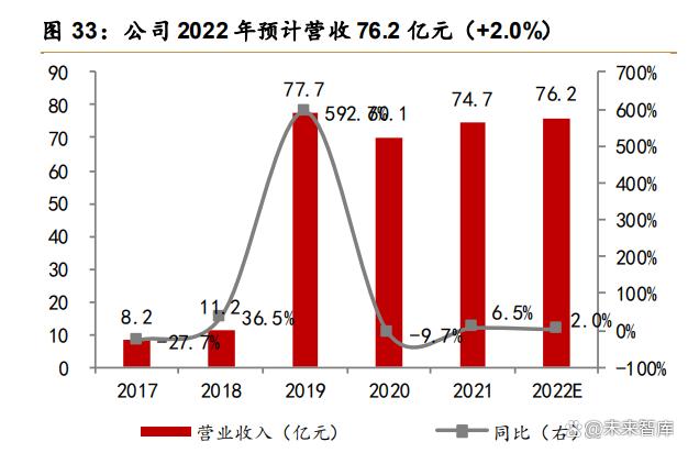 營收及歸母凈利潤雙增長,通過重大資產重組實現(xiàn)業(yè)績擴大。2019 年重大重組置入的 公司均為國家認定的高新技術企業(yè),公司的規(guī)模實現(xiàn)大幅提升,2019 年營收/歸母凈利潤分 別同比增長 593%/374%。2017-2021 年公司營收 CAGR 為 73.6%,歸母凈利潤 CAGR 為 70.6%,根據(jù)公司發(fā)布的業(yè)績預告,2022 年公司預計營收 76.2 億元,同比增加 2.0%;歸母 凈利潤 8.0 億元,同比增加 18.3%。