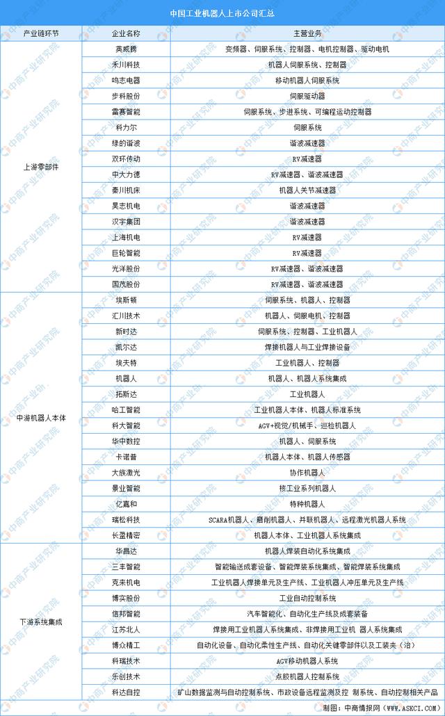工業(yè)機器人產業(yè)鏈環(huán)節(jié)上市公司匯總