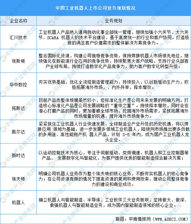 工業(yè)機器人行業(yè)重點上市公司業(yè)務規(guī)劃對比