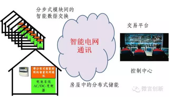 分布式微電網(wǎng)上的能量和產(chǎn)生的數(shù)據(jù),通過智能電網(wǎng)和因特網(wǎng)實(shí)現(xiàn)互聯(lián)互通,將相關(guān)信息發(fā)布到交易平臺(tái)上。微電網(wǎng)本身也由很多小模塊組成,集結(jié)在一起能夠做到在當(dāng)?shù)叵牡羲a(chǎn)生的能量。