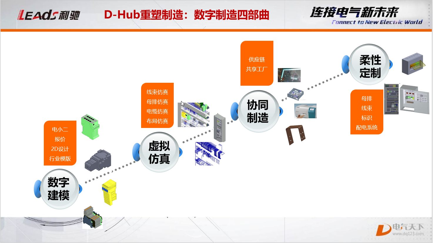 采訪中,令永卓感慨道:“我已經(jīng)服務(wù)于電氣行業(yè)25年,很榮幸作為參與者一路見證電氣行業(yè)由傳統(tǒng)走向今天的智能化,這些離不開智能制造近年來的大力推動(dòng)。當(dāng)前企業(yè)紛紛將其納入發(fā)展的戰(zhàn)略目標(biāo),利馳也不例外,不斷創(chuàng)新研發(fā),先后推出了工業(yè)電氣一站式工作平臺(tái)——電氣天下和D-Hub企業(yè)數(shù)字化協(xié)同平臺(tái),幫助電力裝備制造行業(yè)智造升級(jí)。” 據(jù)了解,電氣天下針對(duì)個(gè)人用戶開放服務(wù),提供海量免費(fèi)工業(yè)設(shè)計(jì)軟件、選型數(shù)據(jù)及服務(wù)、專業(yè)文獻(xiàn)等資源,幫助電氣行業(yè)上下游實(shí)現(xiàn)電氣的選型、圖紙、樣本資料、軟件下載,涵蓋電氣指數(shù)、電氣智庫知識(shí)分享一體化與一站式的服務(wù)。而把眾多工業(yè)軟件集成到一個(gè)云端數(shù)據(jù)庫,一個(gè)統(tǒng)一的數(shù)字化協(xié)同平臺(tái)——D-Hub,則成功地打通了選型、報(bào)價(jià)、設(shè)計(jì)、工藝、制造、供應(yīng)鏈的數(shù)據(jù),使得企業(yè)的數(shù)據(jù)資產(chǎn)可以跨部門、跨企業(yè)的共享和復(fù)用,并讓數(shù)據(jù)在流動(dòng)中不斷增值。目前D-hub已覆蓋多種模板,建立了以3D元件為核心的覆蓋配電、自動(dòng)化行業(yè)1000多個(gè)品牌、3萬多個(gè)系列、2.5億多個(gè)電氣及自動(dòng)化元件數(shù)據(jù)庫。令永卓直言:“D-Hub的功能遠(yuǎn)不止此,利馳已經(jīng)在D-Hub上開始發(fā)力,發(fā)展數(shù)據(jù)可視化技術(shù),進(jìn)而實(shí)現(xiàn)設(shè)備互聯(lián)、產(chǎn)線互聯(lián),以及智能調(diào)度,助力電力裝備業(yè)的設(shè)計(jì)、制造的全流程數(shù)字化。并且,未來D-Hub將帶來更多可能性,實(shí)現(xiàn)設(shè)備數(shù)字化,進(jìn)而將設(shè)備資產(chǎn)與維修工程師和設(shè)備生產(chǎn)商連接起來,實(shí)現(xiàn)資源互聯(lián)和設(shè)備在線,最終實(shí)現(xiàn)智能運(yùn)維,更好地服務(wù)電力電氣行業(yè)。”