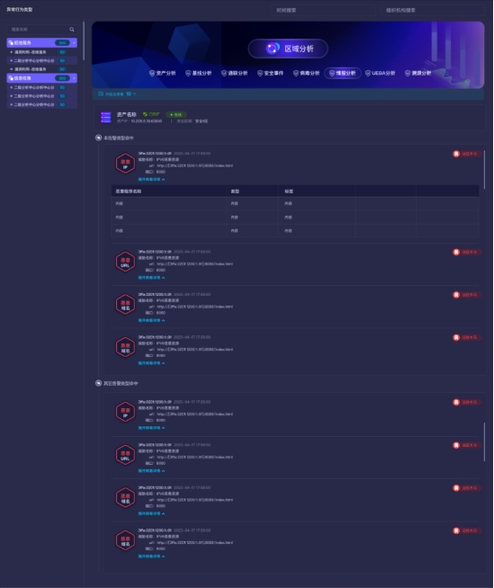 長揚(yáng)態(tài)感網(wǎng)絡(luò)空間安全分析功能以資產(chǎn)為核心,從區(qū)域、聯(lián)通性、病毒、情報(bào)、漏洞、基線、溯源、UEBA行為等多個(gè)方面進(jìn)行全方位、立體化分析。