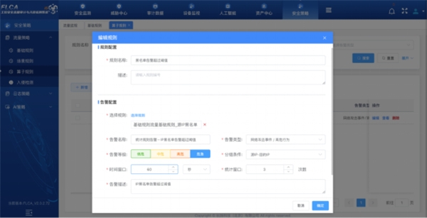 工控網(wǎng)絡(luò)入侵檢測:具備入侵行為特征庫,可對工控網(wǎng)絡(luò)通訊中的協(xié)議、應(yīng)用、通訊行為提供深入準(zhǔn)確的分析、檢測及安全診斷,能夠及時(shí)捕獲網(wǎng)絡(luò)異常行為,發(fā)現(xiàn)網(wǎng)絡(luò)入侵行為并分析潛在安全威脅,如:DNS隱蔽信道、反彈Shell、普通主機(jī)掃描(源IP相同)、分布式主機(jī)掃描(目的IP相同)、普通端口掃描(源IP相同)、分布式端口掃描(目的IP或端口相同)、暴力破解檢測、源與目的IP暴力破解、惡意代碼檢測等。