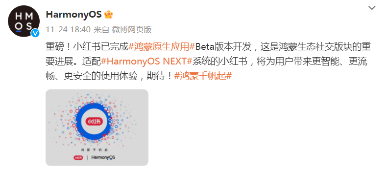 1月10日晚,HarmonyOS微博發(fā)文稱:京東啟動(dòng)鴻蒙原生應(yīng)用開發(fā),雙方將攜手為消費(fèi)者帶來(lái)全場(chǎng)景“多快好省”購(gòu)物體驗(yàn),更智能,更貼心。