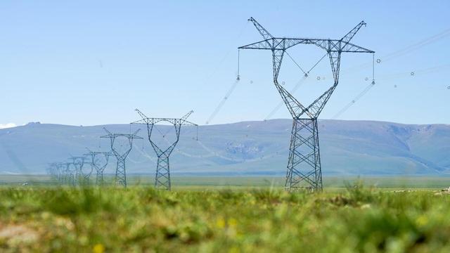 圖為750千伏伊庫線穿越新疆巴音布魯克草原(樊潔 攝)