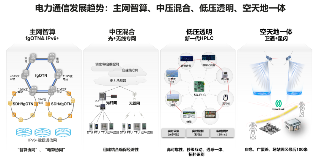 新型電力系統(tǒng)下,通信目標(biāo)網(wǎng)呈現(xiàn)四大特征:主網(wǎng)智算、中壓混合、低壓透明、空天地一體。主網(wǎng)智算需要考慮的是包括以東數(shù)西算為代表的光跑電不跑,以邊緣計(jì)算為代表的電跑光不跑,以及結(jié)合時(shí)空特性,來(lái)助力解決新能源消納和削峰填谷;近期臺(tái)風(fēng)應(yīng)急帶給我們的啟發(fā)是,10kV通信網(wǎng)是電網(wǎng)通信目前最薄弱的環(huán)節(jié),是典型的“盲區(qū)”。這需要體系性規(guī)劃以光纖+無(wú)線專(zhuān)網(wǎng)的通信目標(biāo)網(wǎng),也要輔之以空天地一體的應(yīng)急和廣覆蓋能力;隨著海量的分布式光伏接入、充電樁接入、分布式儲(chǔ)能接入、用戶(hù)互動(dòng)及潛在的負(fù)荷側(cè)交易,這需要體系性思考支撐400V低壓透明的通信需求。