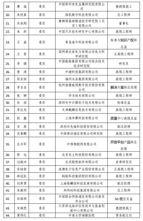 附件:第一屆工業(yè)和信息化部物聯(lián)網(wǎng)標(biāo)準(zhǔn)化技術(shù)委員會(huì)委員名單