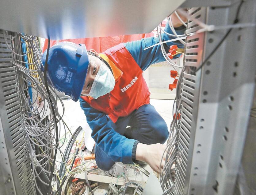 黨員服務隊隊員在±660千伏膠東換流站500千伏保護室內(nèi)檢查裝置接線拆除情況。張進 攝