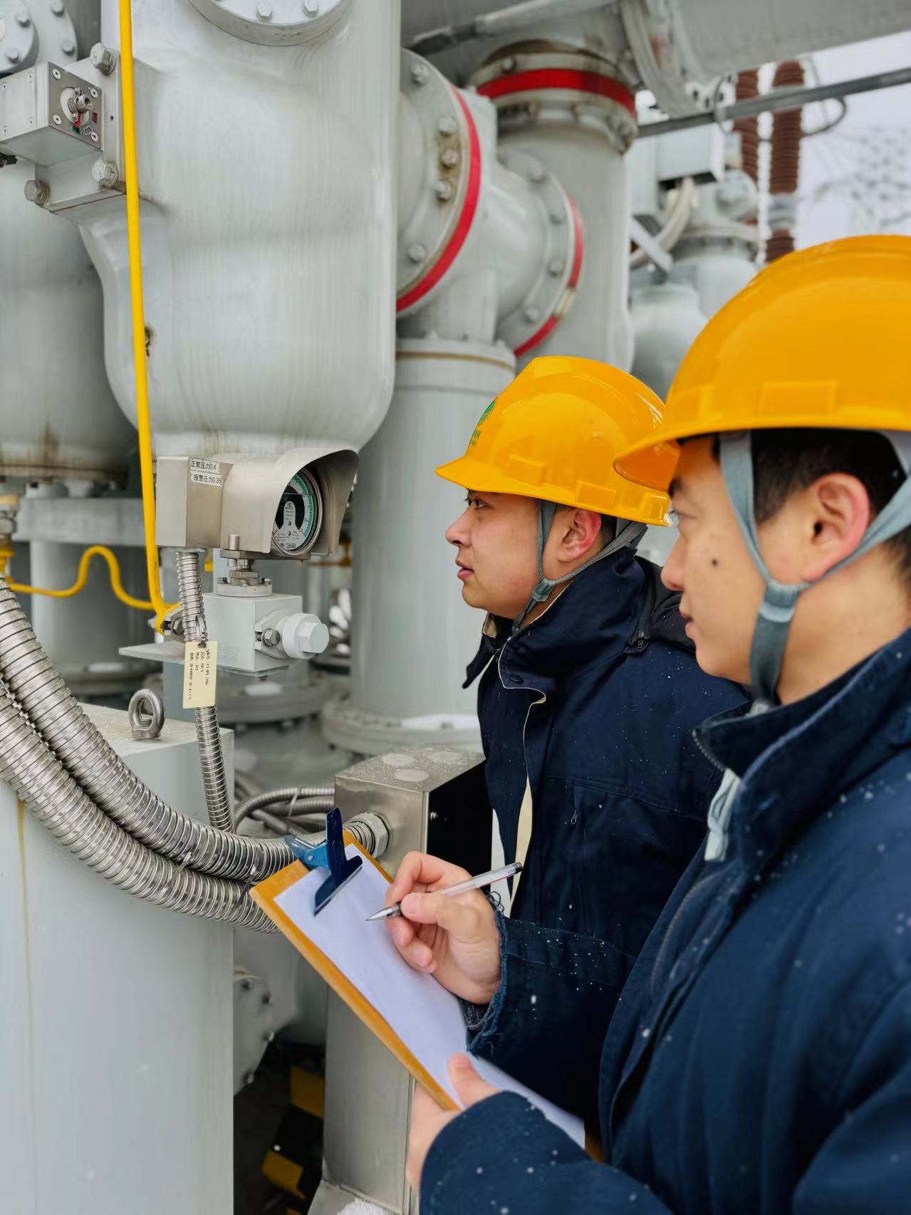 變電運(yùn)維人員實(shí)時(shí)監(jiān)測(cè)GIS設(shè)備氣室SF6氣體壓力值。(圖片由供電公司提供)