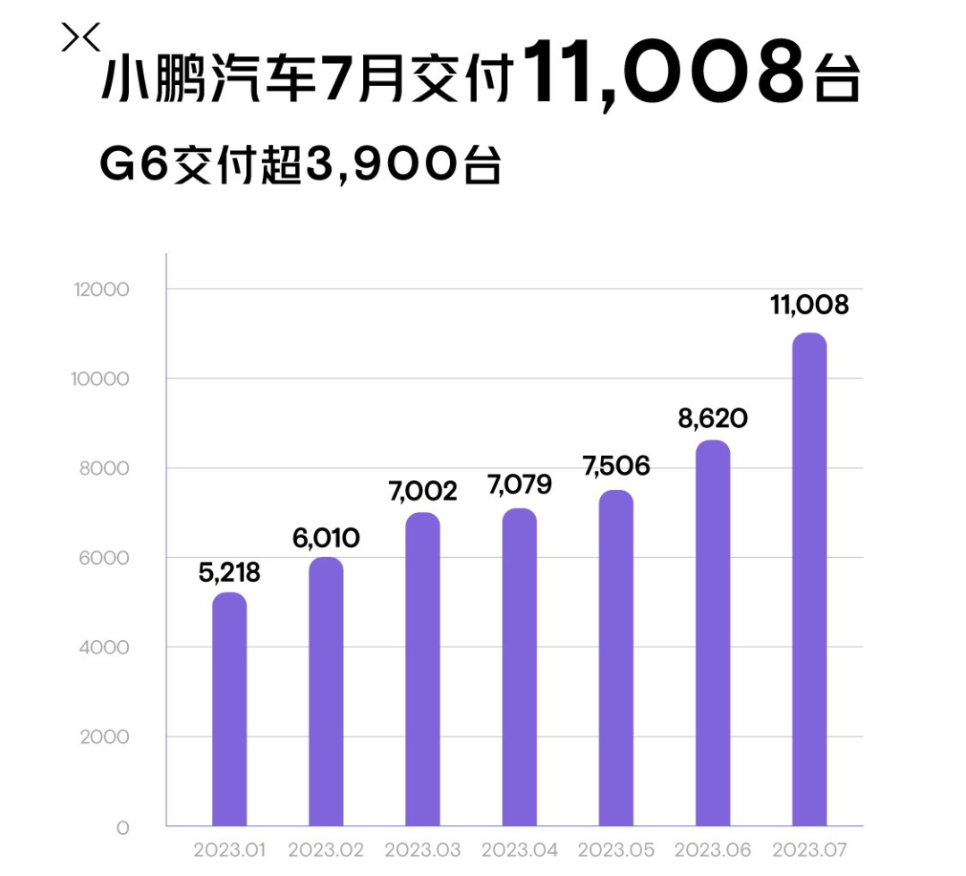 值得一提的是,于6月29日正式上市的小鵬G6在7月即交付超3,900輛,也幾乎以“一己之力”帶動(dòng)了品牌銷量在2023年首次“破萬(wàn)”。