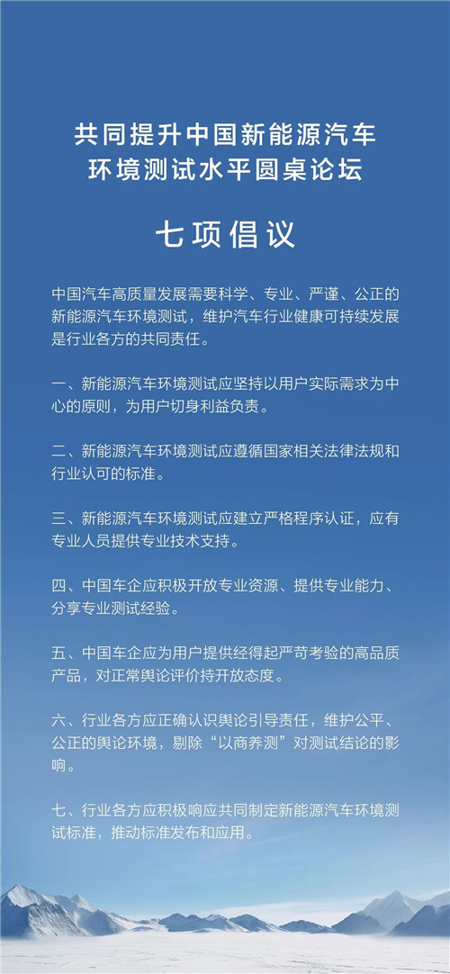 具體來(lái)看,長(zhǎng)城汽車(chē)提出共同提升中國(guó)新能源汽車(chē)環(huán)境測(cè)試水平七項(xiàng)倡議: