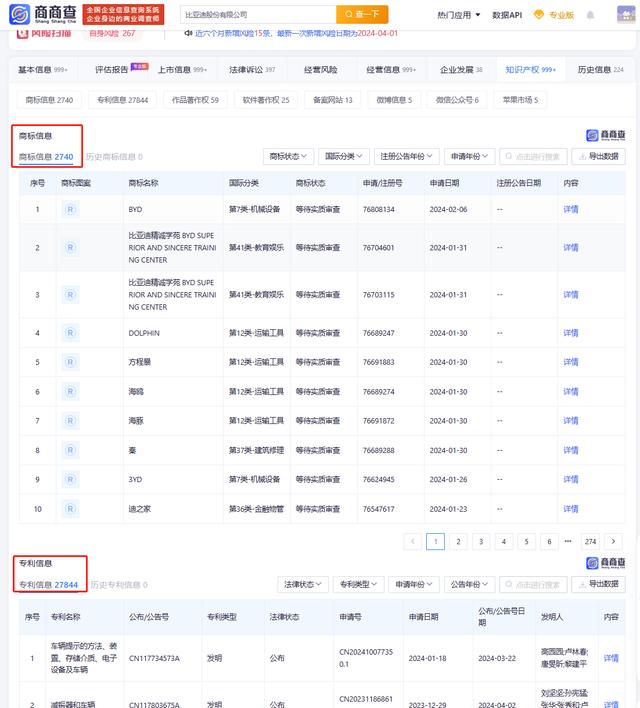 比亞迪的銷量并非僅僅依靠單一車型,而是憑借其豐富的產(chǎn)品線和精準(zhǔn)的市場定位實(shí)現(xiàn)的。根據(jù)商商查資料顯示,目前比亞迪股份有限公司已經(jīng)擁有了2740項(xiàng)注冊商標(biāo),27844項(xiàng)專利信息。比亞迪純電動乘用車銷量和插電式混合動力乘用車銷量均取得了顯著增長,展現(xiàn)了其在新能源汽車領(lǐng)域的深厚積累。