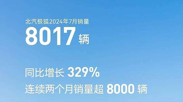極狐汽車(chē)公布了其7月銷(xiāo)量為8017輛,同比增長(zhǎng)329%,表現(xiàn)出了強(qiáng)勁的增長(zhǎng)勢(shì)頭。至此,極狐已連續(xù)兩個(gè)月銷(xiāo)量超8000輛。