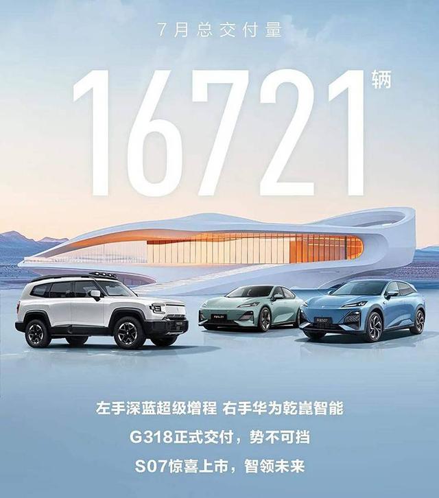 藍(lán)汽車(chē)官方宣布,7月累計(jì)共交付16721輛。在7月份,深藍(lán)G318正式開(kāi)啟交付。深藍(lán)S07也迎來(lái)上市,該車(chē)共推出10款車(chē)型,售價(jià)區(qū)間為14.99-21.29萬(wàn)元。