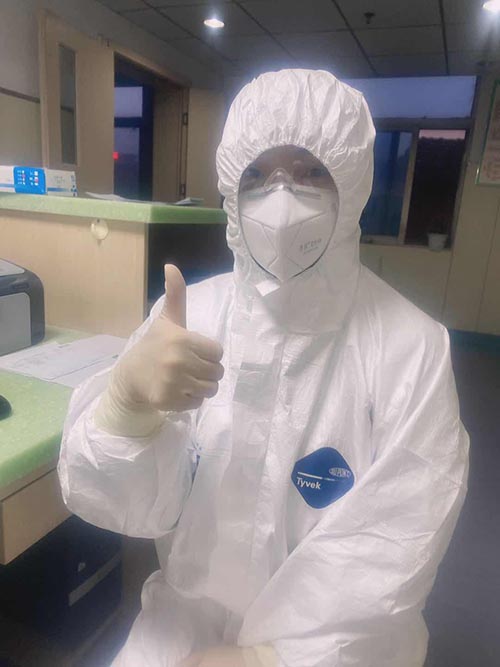 1月28日,負(fù)壓病房因人手不夠,在全院范圍緊急招募志愿者。負(fù)壓病房,需要“全副武裝”,每天和疑似病人近距離接觸,感染風(fēng)險(xiǎn)極大。但受老公經(jīng)常參加搶險(xiǎn)救援戰(zhàn)斗的影響,她多次向領(lǐng)導(dǎo)提出申請(qǐng),并遞交了入黨志愿書(shū),終于獲批“逆行”進(jìn)入最危險(xiǎn)的負(fù)壓病房。接下來(lái)的20多天,她每天都要陪著10幾個(gè)病人,認(rèn)真細(xì)致的檢查防護(hù)、登記、測(cè)體溫等等,但確診檢測(cè)是個(gè)比較漫長(zhǎng)的過(guò)程,有的病人難免產(chǎn)生焦慮、急躁的情緒,她總是像對(duì)家人一樣做好撫慰,幫助他們共克時(shí)艱。20多天來(lái),她以院為家,克服了各種工作和生活困難,比如在多重防護(hù)服下行動(dòng)不便、呼吸不暢、口干舌燥,累了就倚著墻蹲會(huì),困了就靠著椅背瞇會(huì)??傊?,就這樣神秘的消失在家人的視線中,有時(shí)連報(bào)個(gè)平安的電話都沒(méi)空打。