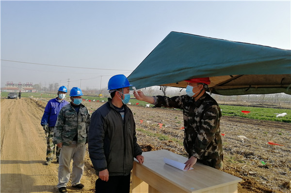 “您好,我是線路工程施工現(xiàn)場的疫情防控員,施工區(qū)域封閉式管理,進(jìn)場人員請主動(dòng)配合測量體溫”。