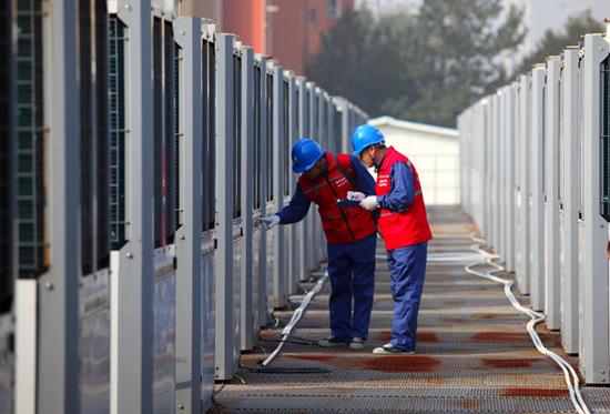國網(wǎng)趙縣供電公司工作人員對李春大道空氣能供熱站主設(shè)備進(jìn)行巡視檢查。侯西果攝