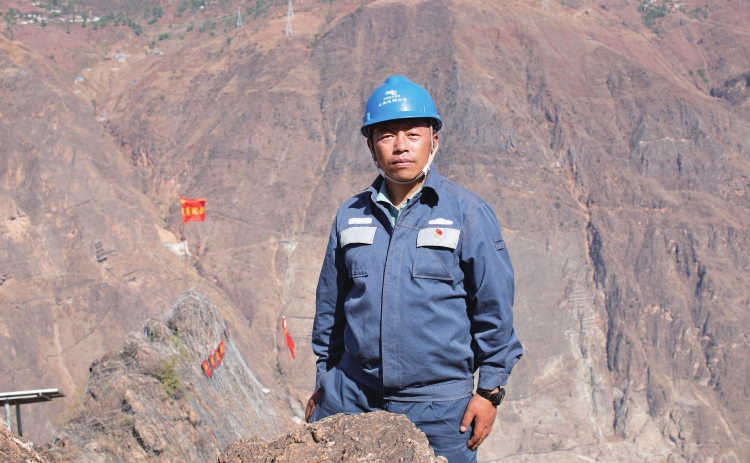 2019年,曾雷擔(dān)任烏東德電站至昆北換流站500千伏交流送出工程1標(biāo)段項(xiàng)目經(jīng)理和黨員突擊隊(duì)隊(duì)長(zhǎng)。電站右岸山坡出線段的A2號(hào)塔,塔位所在山體坡度達(dá)70度,一不留神就會(huì)滑下百米深的懸崖,這樣的極端地形,是曾雷工作22年來(lái)第一次遇到。