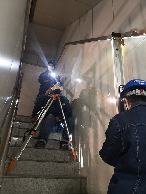 水工分場觀測班接到新的工作任務(wù),配合機械分場完成1號機組中性點高程測量工作。當(dāng)時正值觀測班日常觀測任務(wù)開始之際,時間、人員都很緊張,李亞洲作為本班組重點培養(yǎng)青年,主動承擔(dān)起司儀工作,將1號機組推力層標(biāo)點高程通過廠房上游側(cè)樓梯引至中性點出口處。由于樓梯較窄,階梯高度較大,3米水準尺無法使用,只能通過趴、跪、坐等姿勢看儀器,身形偏瘦的他,多次“搬站”將高程引下,沾滿灰塵的衣服也擋不住他陽光的笑臉,他的“委曲求全”確保了此次測量數(shù)據(jù)的精確性。